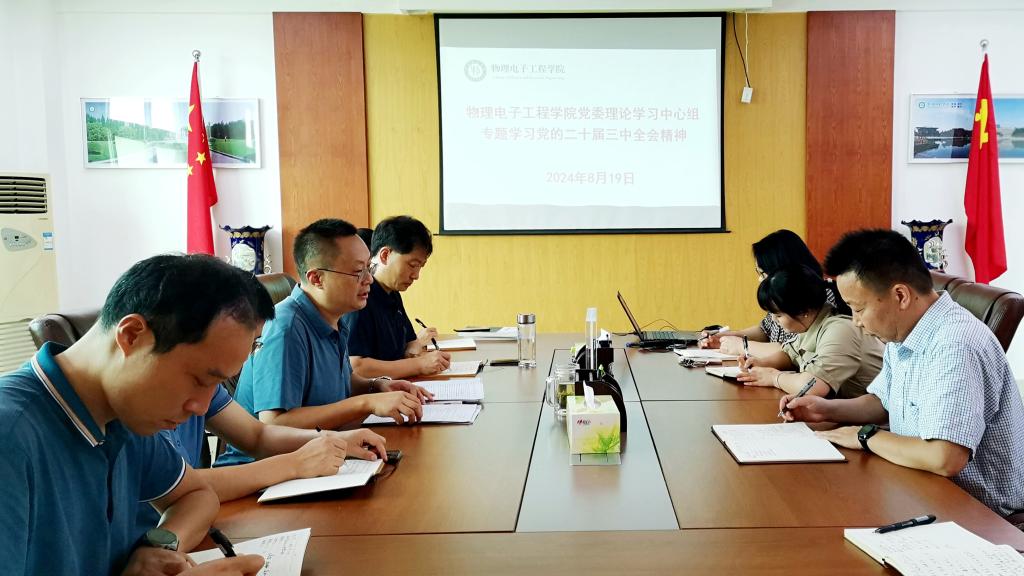 8月19日上午,学院党委理论学习中心组在理科楼911会议室召开党的二十届三中全会精神专题学习研讨会。学院党委理论学习中心组成员和各党支部书记参加会议。会议由学院党委书记方明科主持。