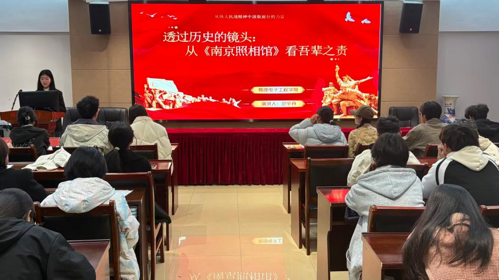 为深化爱国主义教育,引导青年学子铭记抗战历史,传承红色基因,10月24日,丝瓜视频 于理科楼402会议室举办“铭记抗战历史,奋进复兴征程”微团课比赛初赛。本次活动由朱国政、汪璐璐主持,学生会主席团成员担任评委,2024级与2025级学生积极参加。